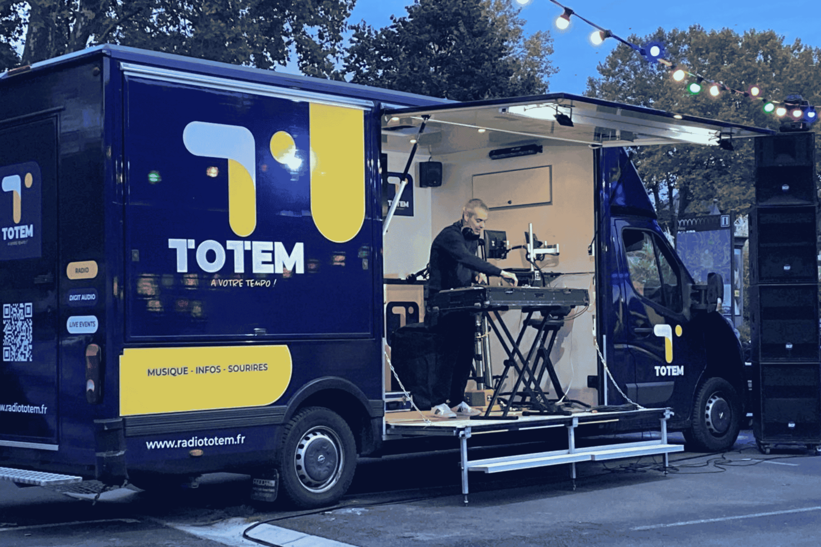 Le studio radio mobile TOTEM vient directement sur votre évènement pour une retransmission en direct. Animation, interviews, promotion antenne et réseaux : un dispositif unique qui attire l’attention et valorise votre territoire.